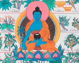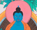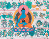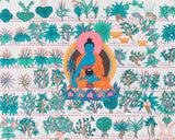 Our thangka is a hand-painted art representing the tibetan medicinal herbs and plants, where Medicine Buddha is right at the center. All the colors are made with the use of natural stones.