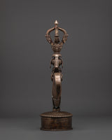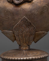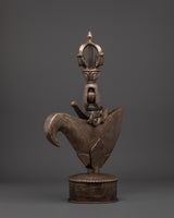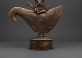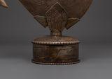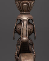 The Tibetan Ritual Kartika Knife is a potent spiritual instrument used in sacred Buddhist rituals and Tantric ceremonies. With a height of 47cm and a width of 31cm, this iron-crafted dagger represents sacred knowledge, protection, and the elimination of negative energies. In Tibetan Buddhism, the Kartika is used to cut spiritual and physical ties with evil spirits, and it is frequently seen in ceremonies that invoke spiritual purification and transformation. The Kartika knife is not only a useful tool, but it also represents the eradication of illusions and the search for knowledge.