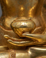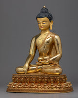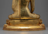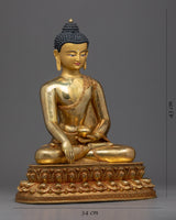 With the skills passed to us from generations of ancient sculpting artists, we have hand-craved this Tibetan Sculpture of Shakyamuni Buddha in our studio with the utmost attention to detail. Using a copper body, we molded the statue's figure, then carved the intricate designs on the statue's robes along with the lotus seat, then gilded the entire statue with genuine 24k gold. The highlight of the statue is the glossy and shine of sculpture. You can use this statue as indoor home décor, for meditational practice, or perform any rituals.
