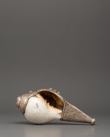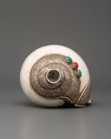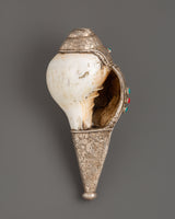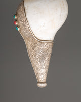 Tibetan Handmade Spiritual Conch Shell | Handcrafted Pure Silver Ritual Decor