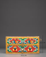 Discover the grandeur of Himalayan spirituality with the Tibetan Traveling Altar Box, a handcrafted shrine for prayer, meditation, and holy rites. This tiny altar, measuring 13.5cm in height and 26.5cm in width, is excellent for individuals who want to carry a piece of Tibetan heritage with them wherever they go. Crafted from fine wood and hand-painted with acrylic colors, it exemplifies Tibetan workmanship with bright detailing and Buddhist devotional motifs.