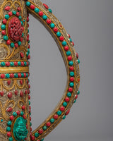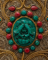 The Traditional Tea Pot is skillfully handcrafted on a copper body, showcasing craftsmanship and attention to detail. The pot is not only a functional vessel for brewing tea but also a work of art. The intricate carving of auspicious symbols adds a touch of spirituality and symbolism to the design. Additionally, the gemstones embedded in the pot further enhance its visual appeal, adding a touch of elegance and luxury. Whether used for brewing tea or as a decorative item, this Traditional Tea Pot embodies the beauty and tradition of tea culture.
