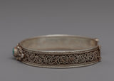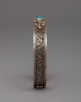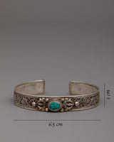 Introducing the exquisite Trending Bracelet, a true masterpiece handcrafted on a silver alloy base. This captivating bracelet showcases the beauty of turquoise stones, skillfully inlaid to create a stunning visual display. The intricate floral design adds an elegant touch, making it a fashionable accessory that perfectly complements any outfit. With its timeless appeal and artisanal craftsmanship, this bracelet is not only a statement piece but also a reflection of individuality and style. Adorn your wrist with this trending bracelet and embrace the beauty of nature's hues and the artistry of skilled hands.