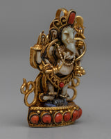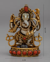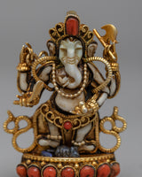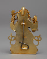 Embrace the divine blessings of the Vinayaka Ganesh Locket, a work of spiritual art. This exquisite locket depicts Lord Ganesh, skillfully carved on cippy stone(small part of sankha), and represents wisdom and auspicious beginnings. The locket's body, which is meticulously handcrafted from silver and plated with 24k gold, exudes a celestial aura, while the inlaid coral stone adds a burst of vibrant energy, creating a stunning contrast against the serene silver backdrop.
