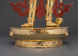 The Vishnu Handmade Gold-Gilded Statue is 51 cm tall and weighs 4.94 kg, capturing the grandeur and beauty of one of Hinduism's most beloved deities. Crafted with precision from a copper base, the statue is encased in 24K gold gilding, which not only gives a gleaming gloss but also shows the delicate craftsmanship of Vishnu's traditional robes and heavenly insignia. This first paragraph focuses on the statue's physical and aesthetic characteristics.