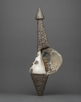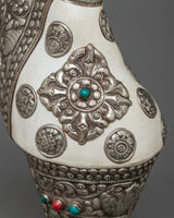 This White Metal Shankha is more than just a work of art; it represents purity and divine sound. The meticulously inlaid gemstones add a touch of elegance and are thought to boost the shankha's spiritual energy. It's an excellent addition to your meditation practice, acting as both a call to mindfulness and a link to the sacred.