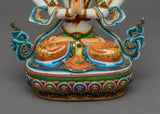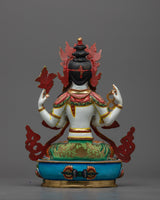 The White Serene Chenresig Statue, which measures 12.2 inches, will help you embrace compassion and calm. This gorgeous statue is made of copper and is gilded with 24K gold. It has beautiful paintings in gold and acrylic that highlight Chenresig's serene expression and flowing robes. Any spiritual or meditation place would benefit greatly from the amazing artistry that embodies Chenresig's loving presence.