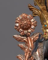 This magnificent White Tara Buddhist Goddess statue is a lovely addition to your own altar or meditation area. The statue weighs 3.48 kg and is 13.7 inches in height with a base diameter of 9.4 inches. Its exquisitely oxidized copper construction and 24K gold and silver plating embellishments capture the divine essence of the White Tara's caring presence.