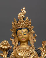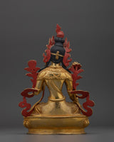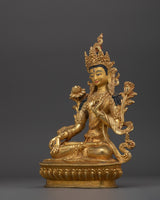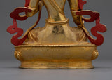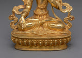 White Tara, often known as the "Mother of Liberation," represents wisdom and unconditional love. This statue is a depiction of the well-known goddess of compassion and longevity. This statue, made of copper and gilded in 24K gold, features beautiful gold and acrylic paintings that highlight the intricate artistry of Himalayan handicrafts.