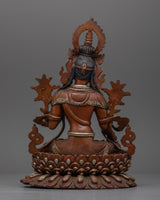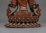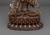 This 2.31-kilogram statue is made with care and strength, making it a treasured addition to your collection. The harmonizing combination of oxidized copper and silver represents White Tara's ageless compassion and restorative abilities. This statue is perfect for those who practice Buddhism, love meditation, or appreciate beautiful art. It will help you become more deeply connected to White Tara's teachings and blessings.