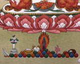 THIS THANGKA IS HAND-PAINTED IN THE TRADITIONAL KARMA GADRI STYLE AND THE QUALITY IS HIGH