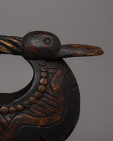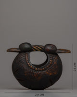 With the intriguing Wooden Boat Statue, you can infuse your room with a hint of creative elegance. This gorgeous sculpture, which is handcrafted on a wooden body, shows two birds arranged head-to-head on a circular base. Its symmetrical shape draws attention to its fine features and craftsmanship while creating a captivating visual appeal. This statue is a distinctive addition to any decor collection since it skillfully blends natural beauty with artistic flare, whether it is shown in your office or as the focal point of your mantle.