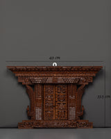 Elevate your living space with this gorgeous wooden door wall hanging, which is masterfully hand-carved from wood to capture exquisite classical designs. This magnificent wooden wall art, measuring 33.5 cm in height and 49 cm in width, adds the beauty of ethnic craftsmanship and rustic charm to your home. Its intricate carvings, which include symbolic peacock motifs and cultural patterns, transform it into a unique accent piece, ideal for individuals who value artisanal design and spiritual home elements.