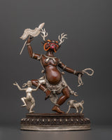 Wrathful Stag Face Deity | Silver Plated Oxidized Copper Statue