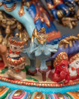 Invite the formidable presence of Yamantaka and his consort into your sacred space with this hand crafted statue. Created by master artisans in Patan, Nepal—a city renowned for its exceptional metalwork—this statue is more than just an art piece; it is a profound symbol of spiritual power, protection, and transformation.
