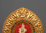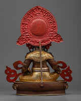 Discover Dzambala's enchantment, brilliantly depicted in this finely carved statue. Every contour and detail comes to life, encapsulating the rich symbolism and essence of Dzambala, the wealth and prosperity deity. The oxidized copper body's deep tones are offset by the glitter of 24K gold plating, and beautifully placed gold and acrylic paintings provide depth and vitality to the piece.