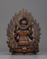The oxidized copper lends the statue a rich, earthy tone, emphasizing the fine details and the forceful presence of Yellow Zambhala. This one-of-a-kind finish gives the figure an ancient charm and depth, underlining its spiritual value and artistic beauty.
