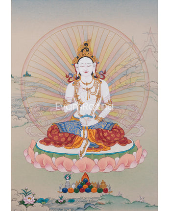 As requested for consecrations/blessings, we can take thangka to Monasteries/Rinpoches from nearby Boudha Stupa. We kindly ask you to offer $50 for the monasteries for blessings/consecration services.