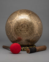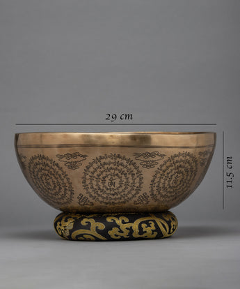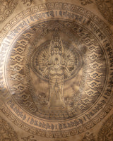 This expertly crafted brass yoga singing bowl helps to find finds inner calm. The A2 frequency produced by this premium bowl is ideal for meditation and relaxation. Our singing bowl, which features the 1000 Armed Chenresig's exquisite design, is a lovely addition to your meditation routine. Our singing bowl, which was carefully and precisely made, will undoubtedly bring peace into your life.