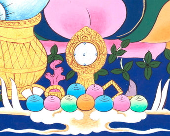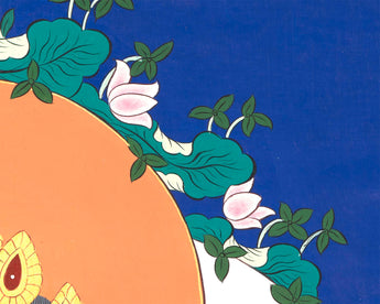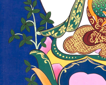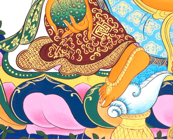Our thangka is a handpainted Tibetan art done using traditional methods. It is a unique piece created using genuine 24K gold and natural stone colors.