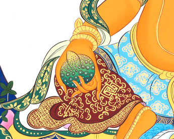 Zambala, also known as Kuber is the god of wealth. Zambala or Kubera is also believed to be an emanation of Avalokitesvara or Chenrezig, the Bodhisattva of Compassion. Zambala is the fortune of wealth and prosperity. It is believed that if anyone keeps the painting or statue of Zambala in their home they will be blessed with wealth and prosperity.