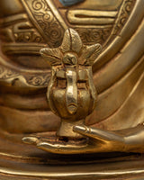 Enter the realm of the famous Zhabdrung Rinpoche, a symbol of national unity and spiritual understanding. This statue represents the essence of Zhabdrung Rinpoche, Bhutan's founding father who not only unified the country but also established its spiritual foundation. This statue transcends mere art, turning into a bright symbol of unity, perseverance, and spiritual guidance. It is cast in pure copper and delicately embellished with radiant 24k gold gilding with complex acrylic paints.