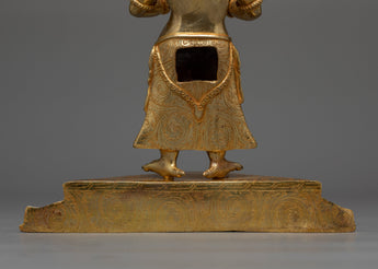 This statue is made of a copper body and is opulently decorated with 24K gold gilding. Its eye-catching acrylic and gold paintings draw attention to its exquisite craftsmanship. The black paint on his face is a characteristic that gives him a mysterious and deep quality while highlighting the expressive features that accentuate his strong spiritual energy. Its profound and inspiring presence, accompanied by its 1.59 kg weight, makes it the perfect addition of mystery and charm to any collection or spiritual area.