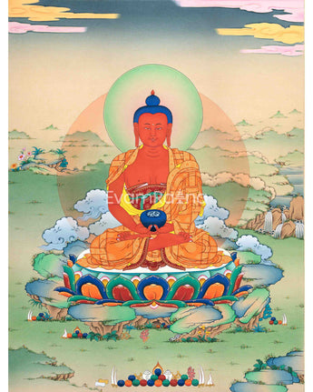 Step into a realm where spirituality and art converge in our captivating Amitabha Buddha Thangka Print. Crafted with precision on exquisite cotton matt canvas, this masterpiece is a testament to the fusion of tradition and innovation. Through the intricate giclée printing technique, every nuance of Amitabha Buddha's presence springs to life, carrying with it a sense of timelessness and reverence. The canvas itself speaks of authenticity, echoing the tactile essence of ancient thangka paintings. The Amitabha Buddha's gentle gaze becomes a beacon of serenity, a resplendent reminder of the path to enlightenment that graces your surroundings. As you welcome this print into your space, you're not just acquiring art; you're inviting a spiritual journey, an artistic marvel, and a slice of divine tranquility that resonates beyond the canvas.