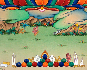 As requested for consecrations/blessings, we can take thangka print to Monasteries/Rinpoches from nearby Boudha Stupa. We kindly ask you to offer $50 for the monasteries for blessings/consecration service.