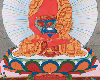 The High-Quality Amitabha Buddha Giclee Canvas, depicting the Red Buddha, encapsulates the essence of divine compassion and enlightenment within Buddhist tradition. Amitabha Buddha, also known as the Buddha of Infinite Light, is revered for his boundless love and mercy, offering salvation to all beings. Crafted with meticulous attention to detail and using the finest materials, this Giclee canvas radiates with the vibrant hues of red, symbolizing the transformative power of wisdom and compassion. The serene countenance of Amitabha exudes a sense of tranquility and spiritual grace, inviting viewers into a realm of inner peace and spiritual awakening. Displayed in homes, meditation spaces, or sacred shrines, this exquisite artwork serves as a powerful reminder of Amitabha's blessings and the universal aspiration for enlightenment and liberation from suffering.