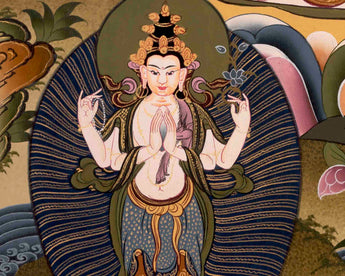 It goes without saying that every detail of a painting has a symbolic meaning. Regardless of your religious affiliation, a thangka can help you on your path to enlightenment, whether you practice Buddhism or have other religious convictions. Thangkas are paintings that depict deities with various iconographic elements and symbolism that encourage meditation on the teachings of the god they depict. Any thangka is intended to aid in the removal of the film of ignorance, which is a significant barrier to the road to enlightenment. The Thangka is revered as a holy item. They promote positivity, spread Buddhism's teachings, bring about peace, harmony, and oneness, and dispel any negative energy that may be there.