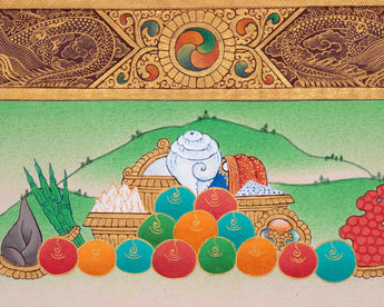 As requested for consecrations/blessings, we can take thangka to Monasteries/Rinpoches from nearby Boudha Stupa. We kindly ask you to offer $50 for the monasteries for blessings/consecration service.