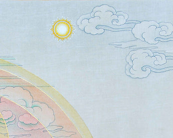 Amitabha Buddha, a focal figure in Pure Land Buddhism, serves as a symbol of compassion and wisdom. Renowned for his vow to embrace all beings into his pure land, Sukhavati, to ensure their enlightenment, Amitabha's representation in the thangka stands as a poignant reminder of boundless compassion and the potential for a life awakened from suffering. The thangka encapsulates the essence of Amitabha's teachings, offering a visual expression of his merciful nature and the aspiration for spiritual liberation.