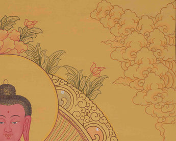 The Amitabha Buddha, also known as Infinite Light, is magnificently shown in this Painting, which was hand-painted in Kathmandu by a Nepali artist.