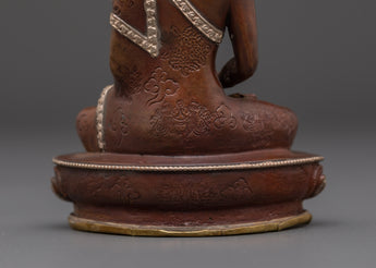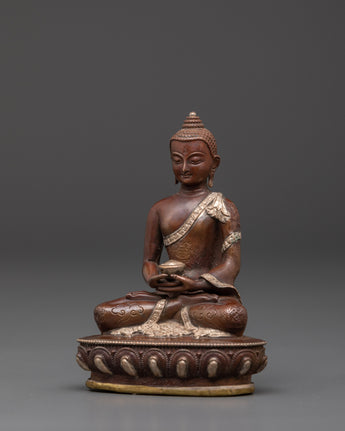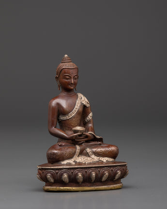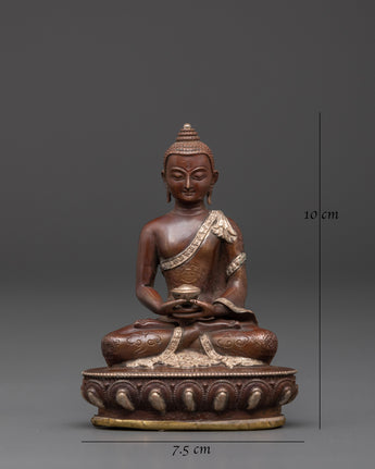 This Amitabha Buddha Compassion Deity Statue beautifully captures the boundless compassion and profound wisdom of Amitabha, the Buddha of Infinite Light. Crafted from oxidized copper and silver plated, this finely detailed sculpture measures 10cm in height and 7.5cm in width, weighing 0.18kg—an ideal size for meditation spaces, personal shrines, or sacred altars. Revered for his power to guide beings toward enlightenment and liberation, Amitabha offers a comforting and inspiring presence that enhances spiritual practice. Display this statue to cultivate compassion, deepen your connection to the path of awakening, and invite clarity and peace into your sacred environment.