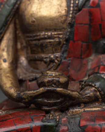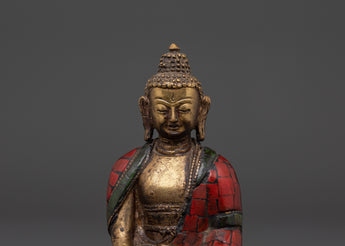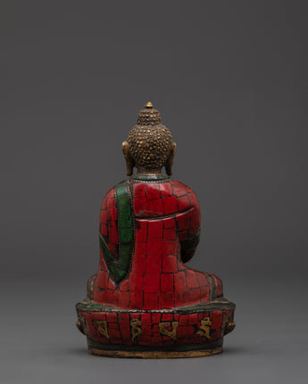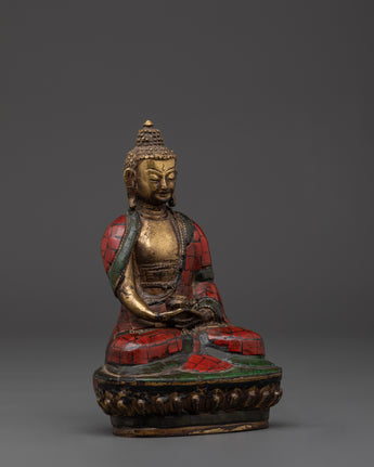 Handcrafted Amitabha Religious Buddhism Statue with Coral & Turquoise Inlay