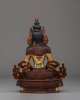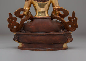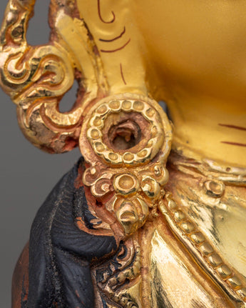 The Handmade Golden Statue of Amitayus is a magnificent representation of Amitayus, the Buddha of longevity, who is revered in Tibetan Buddhism for his ability to grant health, long life, and spiritual well-being. Standing at 23.5cm tall and weighing 1.66kg, this statue is crafted from copper, finished with 24K gold plating, and detailed with vibrant acrylic colors. Amitayus is often invoked to bring blessings of health and vitality, making this statue an essential piece for meditation, prayer, and altar decor, inviting positive energy and healing into your space.