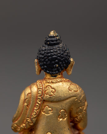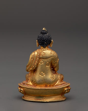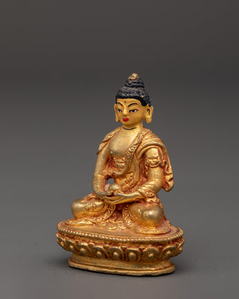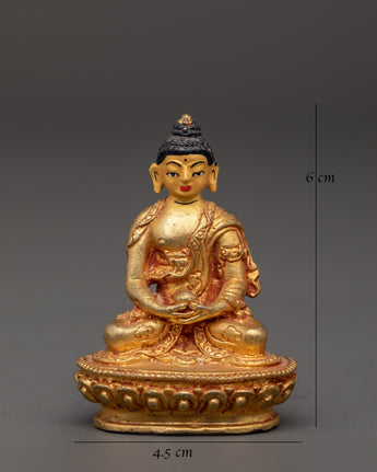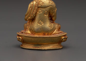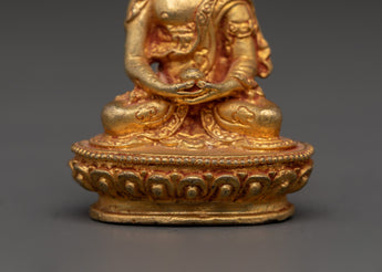 Handcrafted from a copper body and gold-plated to increase spiritual presence, this small yet intricate statue stands 6cm tall and 4.5cm wide, and weighs 0.064. Its elaborate design includes flowing monastic robes, a masterfully carved lotus base, and gentle facial features that convey tranquility and awareness. This small size makes it ideal for personal altars, travel shrines, or sacred areas in the house.