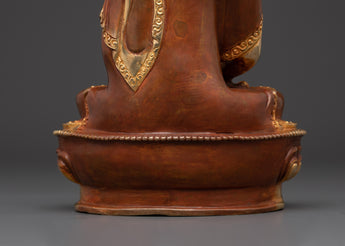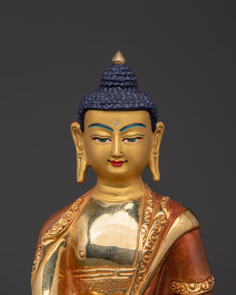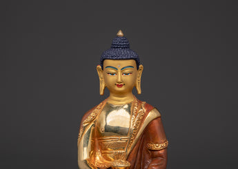The Amitabha Buddha statue, crafted by skilled artisans, showcases intricate decorations that embody Buddhist history and the rich traditions of Himalayan artistry. The use of copper as a base material, paired with gold plating, heightens its visual appeal and spiritual importance. Amitabha Buddha is recognized for his limitless light and vitality. Displaying this statue in your home can bring about positive energy, healing, and more profound meditation.