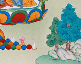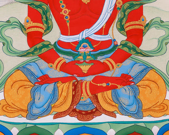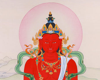 Immerse yourself in the serenity of our Amitayus Buddha artwork, a meticulously hand-painted Tibetan thangka that resonates with the essence of longevity and spiritual enlightenment. This exquisite piece captures the divine grace of Amitayus, revered in Tibetan Buddhist tradition for his ability to bestow blessings of extended life and profound spiritual growth. Each brushstroke on this thangka reflects centuries of artistic tradition, offering a visual delight and a gateway to inner peace and spiritual fulfillment. Perfect for meditation spaces or as a meaningful gift, our Amitayus Buddha artwork embodies the timeless wisdom and beauty of Tibetan culture, inspiring harmony and reverence in every glance.
