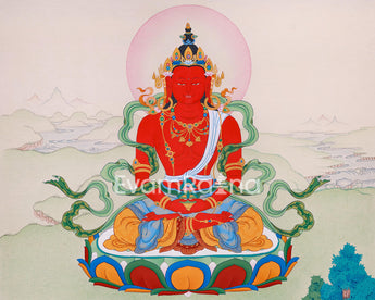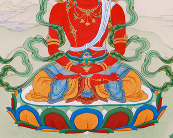 Amitayus Buddha Artwork | Hand-Painted Tibetan Buddhist Thangka | Longevity and Spiritual Enlightenment