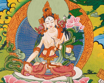It goes without saying that every detail of a painting has a symbolic meaning. Regardless of your religious affiliation, a thangka can help you on your path to enlightenment, whether you practice Buddhism or have other religious convictions. Thangkas are paintings that depict deities with various iconographic elements and symbolism that encourage meditation on the teachings of the god they depict. Any thangka is intended to aid in the removal of the film of ignorance, which is a significant barrier to the road to enlightenment. The Thangka is revered as a holy item. They promote positivity, spread Buddhism's teachings, bring about peace, harmony, and oneness, and dispel any negative energy that may be there.