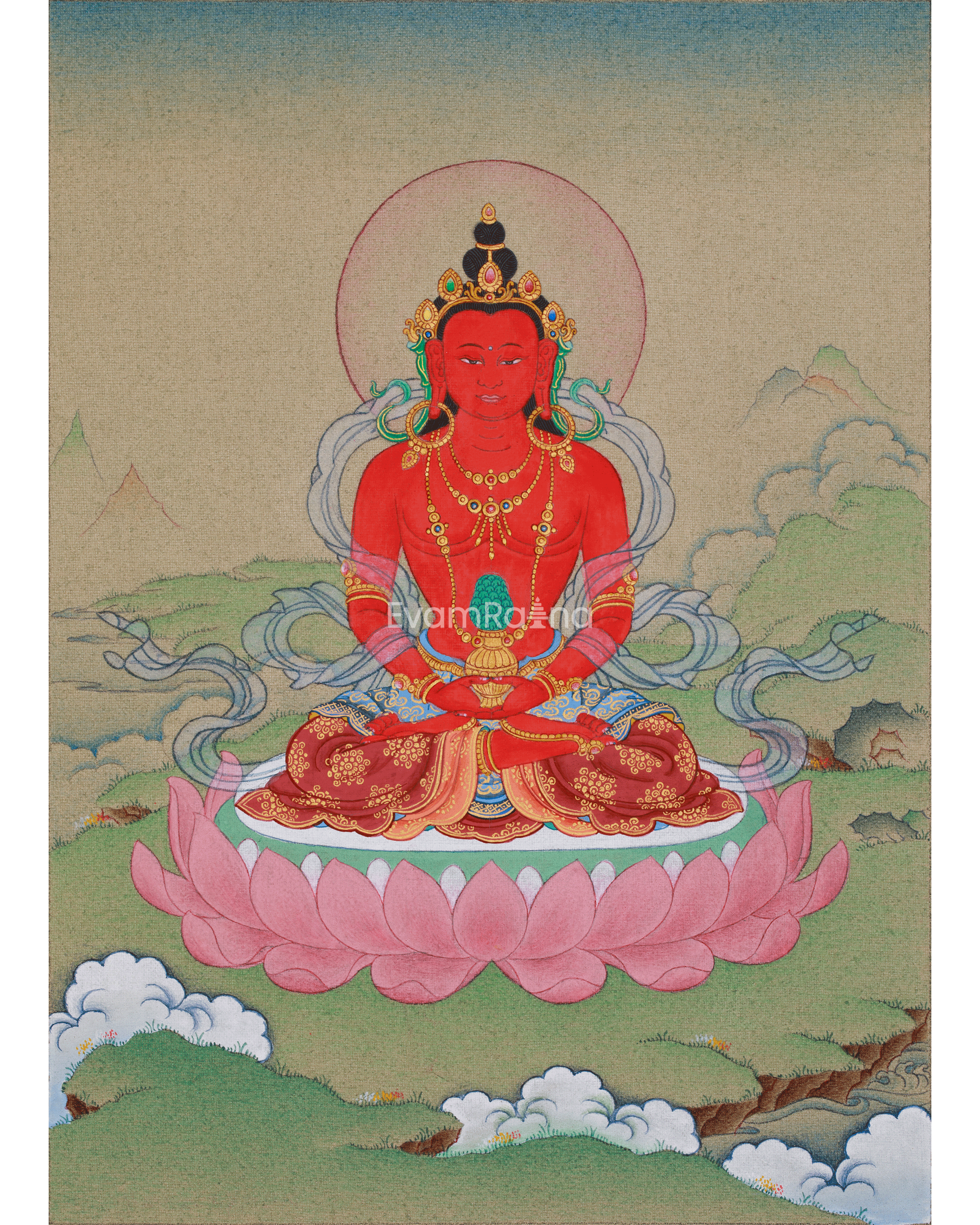 Compact Thangka of Amitayus Buddha | Red Buddha of Longevity