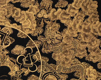 Extensive patterns and motifs enhance the intricate beauty of the gold, which represents Amitayus' divine grace and wisdom with every stroke. This Thangka creates awe and reverence in viewers by bringing them into the Buddha's presence. It offers visitors a holy gateway and a work of visual art to explore the depths of enlightenment and the infinite potential of the human spirit.