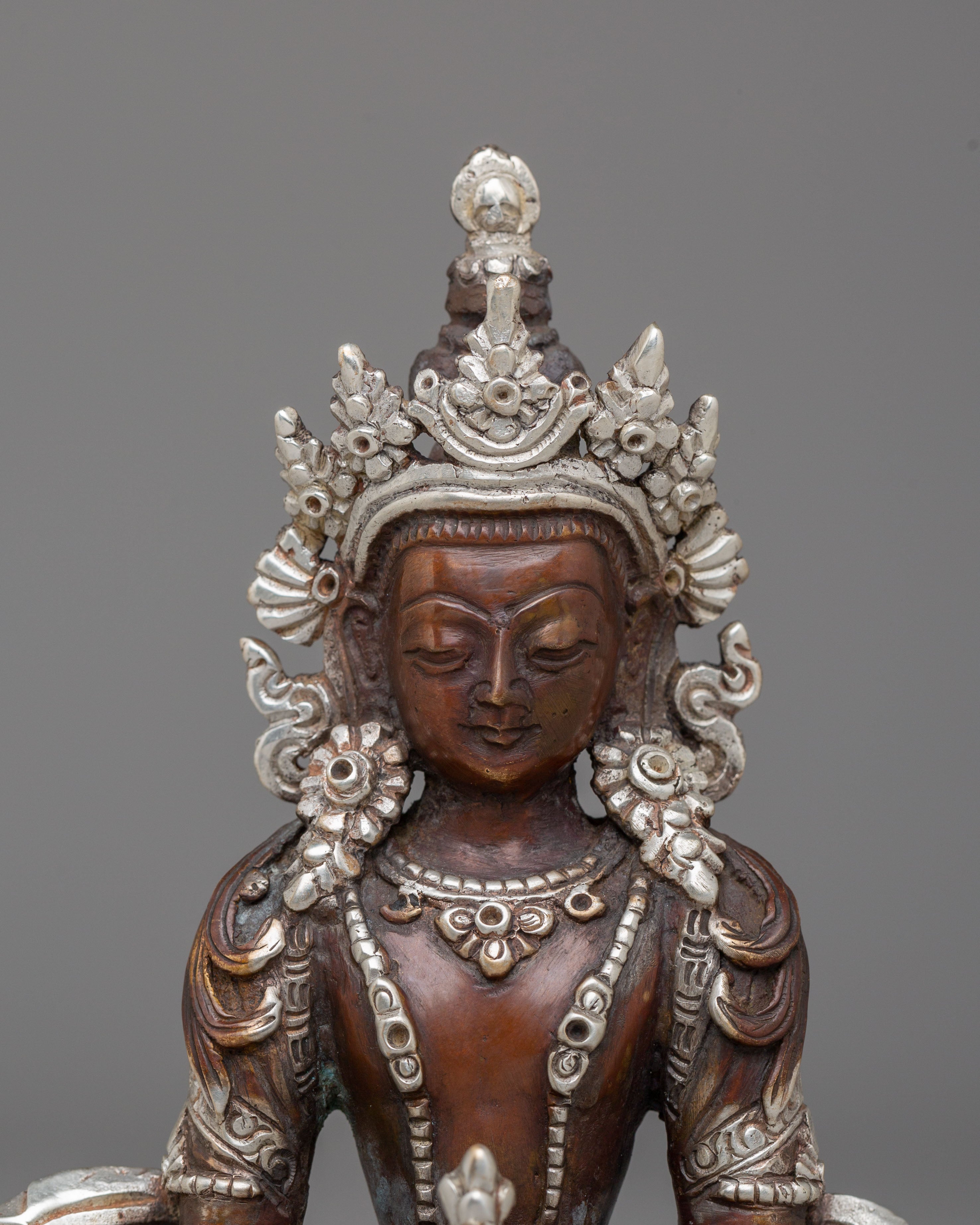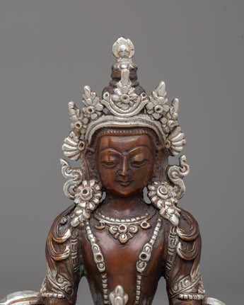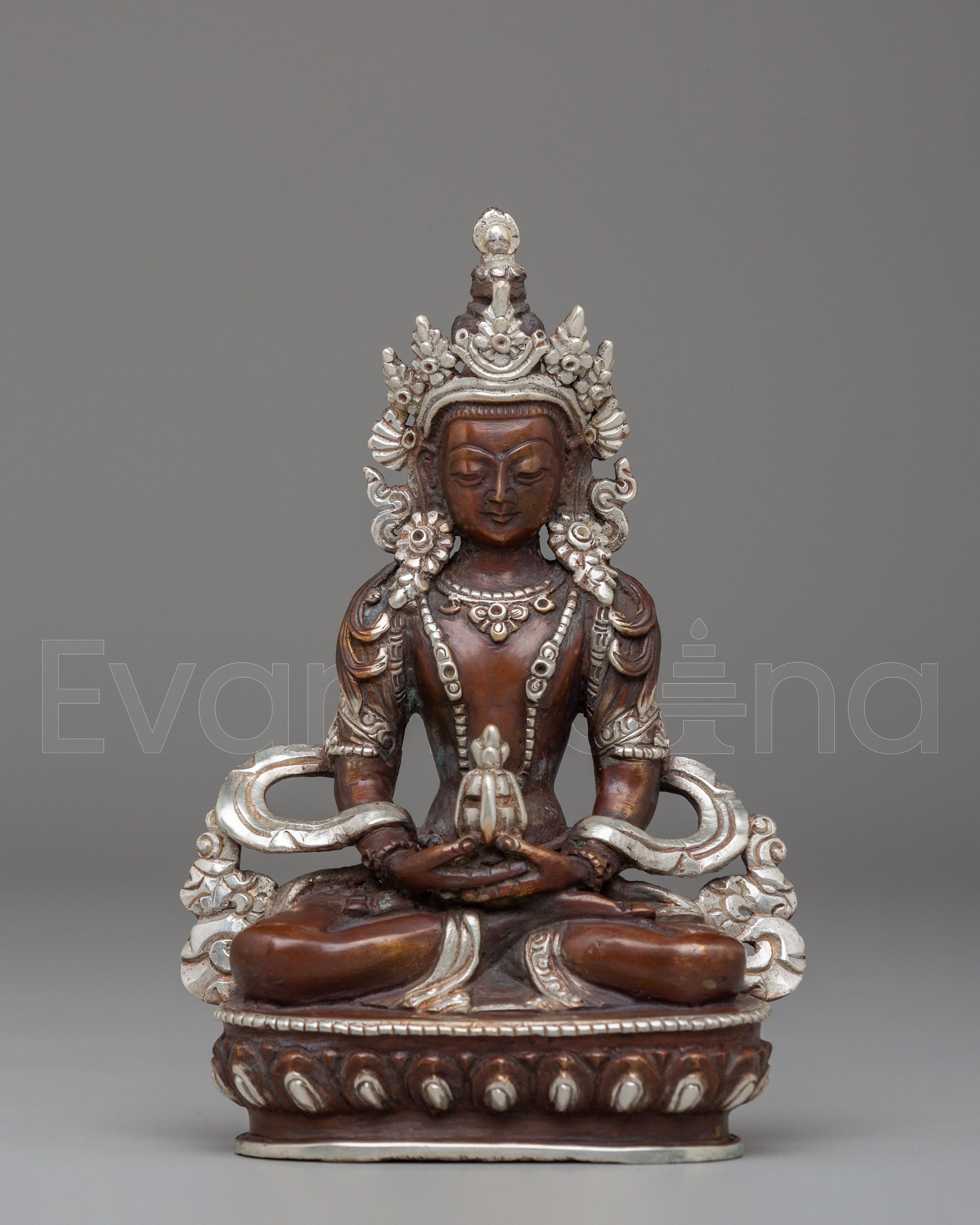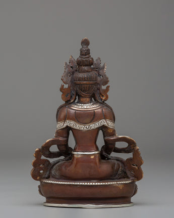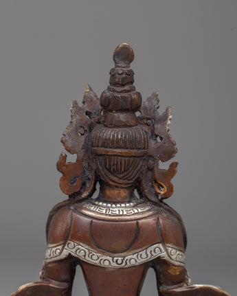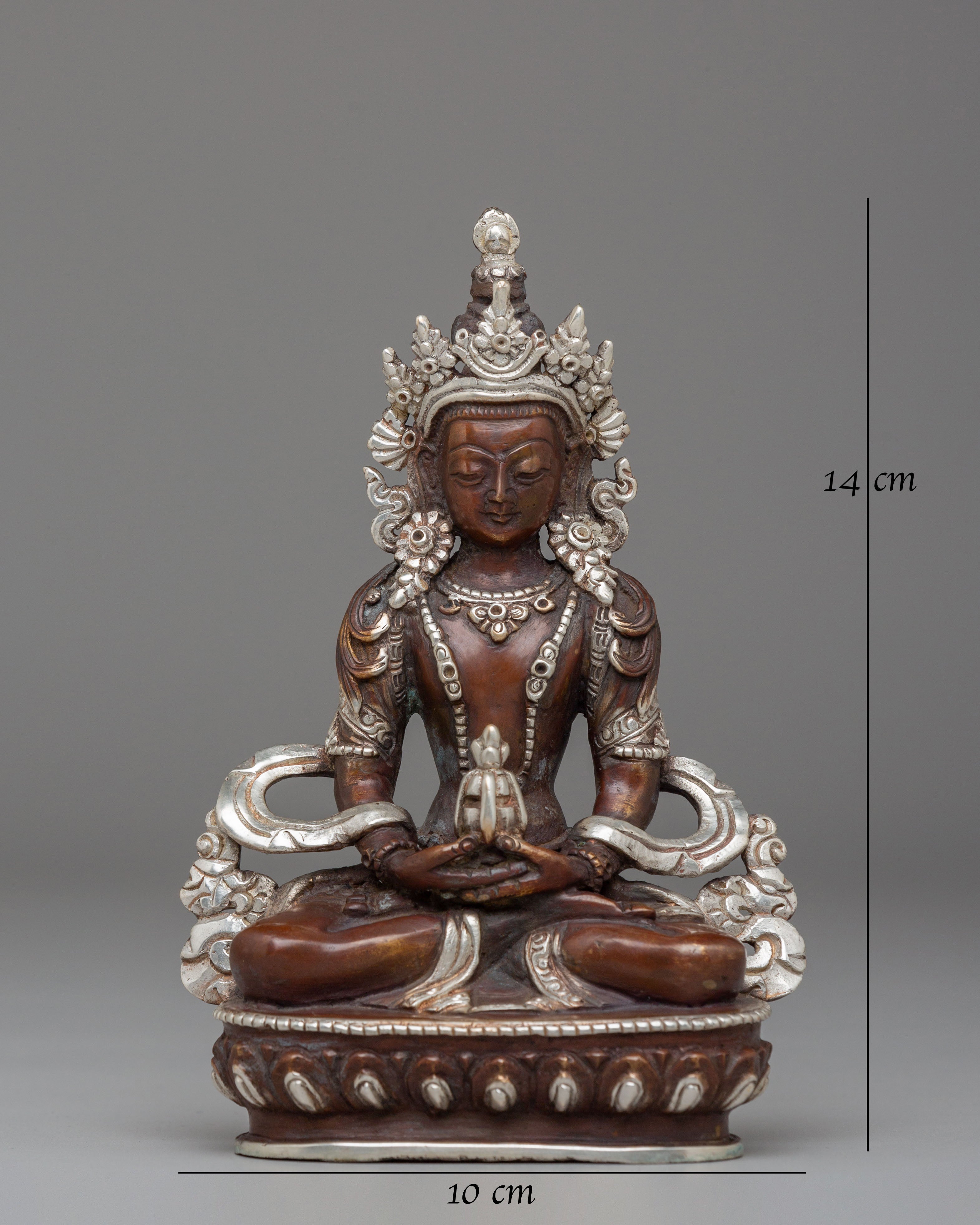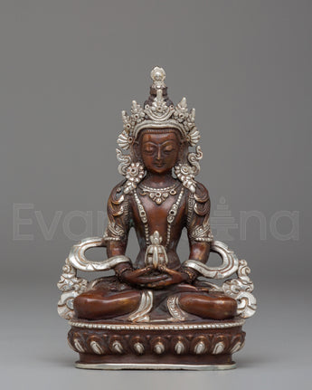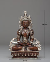 Handmade Silver Plated Amitayus Statue for Dharma Decor