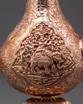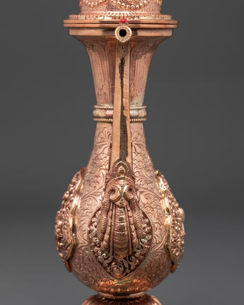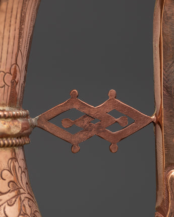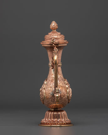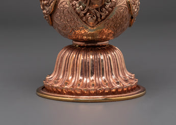 This copper Bhumba, measuring 27.5cm in height and 18cm in width and weighing 0.84kg, is expertly crafted to provide the perfect balance for ritual use. Each piece is shaped and finished by skilled artisans, ensuring it honors the sacredness of its purpose. Traditionally filled with water, herbs, or grains, this ritual vessel plays a crucial role in Buddhist empowerment practices, healing ceremonies, and purification rites. Beyond its ceremonial function, the Bhumba serves as a powerful symbol of abundance, spiritual cleansing, and divine protection, making it a meaningful addition to any spiritual collection or altar. Embrace its timeless significance to deepen your connection with sacred traditions and enhance your ritual experience.