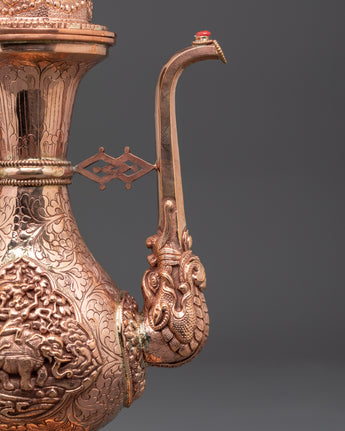 The Buddhist Sacred Bhumba is a revered ritual vase deeply rooted in Tibetan and Himalayan spiritual traditions. This sacred vessel symbolizes purification, protection, and the flow of divine blessings, playing a vital role in numerous Buddhist ceremonies and practices. Expertly crafted from copper, the Bhumba combines cultural artistry with profound spiritual significance, making it an essential object for both practitioners and collectors. Its elegant design not only enhances sacred rituals but also serves as a meaningful decorative piece that invites peace and positive energy into any space. Experience the deeper connection to tradition and spirituality this sacred vessel offers as you incorporate it into your personal or communal sacred practices.