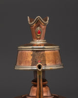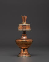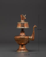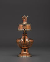 Honor your spiritual practices with this unique Copper Bumpa Set with Bird-Form Spouts, which is carefully created for Tibetan rites and altar use. Standing 21cm tall and 12.5cm wide, each vessel has a beautiful bird-shaped spout that represents spiritual connection and the flow of blessings in the Himalayan culture. With a combined weight of 1.08 kg (0.54 kg each), this matched pair is suitable for presenting consecrated water during puja, meditation, or temple ceremonies.