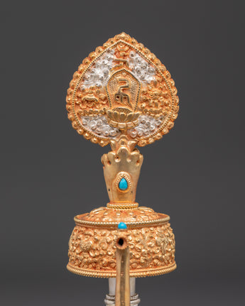 Discover the profound symbolism and exquisite craftsmanship of our Himalayan Bhumba Set, designed to elevate your spiritual practice. Meticulously crafted from copper and enhanced with gold and silver plating, this set features vibrant turquoise stones known for their healing properties. The Bhumba, a revered emblem of longevity, is traditionally used in meditation and spiritual rituals to foster focus, calm, and inner peace. Measuring 23 cm in height and 10 cm in width, its elegant presence makes it a captivating centerpiece for any sacred space, inviting harmony and positive energy into your environment.