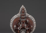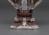 This Handcarved 1000 Armed Chenrezig Oxidized Copper Statue is 15 cm tall and 9 cm wide, and weighs 0.28 kilogram. It is crafted from oxidized copper with exquisite silver plating and features a solid base for stability, as well as elaborate decoration that reflects its Tibetan heritage. Its small size makes it ideal for home altars, meditation areas, or workplace places, adding a magical touch to any environment.